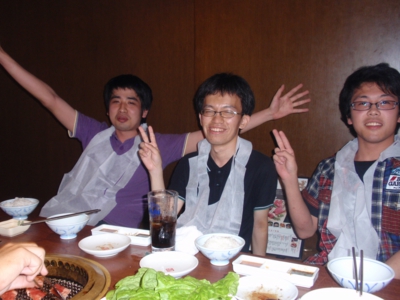 2014.7.27オープンキャンパス打ち上げ (木下君、永嶋君、井堂君、鶴田、河野君、孫君)
