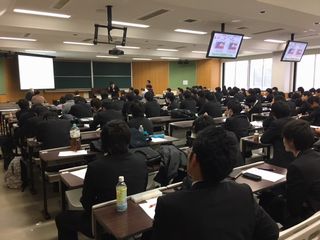 田中様の話に真剣に耳を傾け、熱心にメモを取っている学生の姿が印象的でした。この講演で得られたことを残りの学生生活に活かしてくれるものと期待しております。お忙しい中、ご講演をいただいた田中 様に学科教職員一同心より御礼申し上げます。