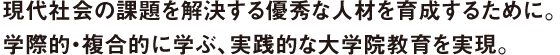博士後期課程を1専攻・1分野に統合・再編し、専攻間の壁を取り払った学際的・複合的な研究を実現します。