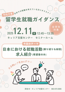 毎回多くの方にご参加いただいている留学生就職ガイダンスを今月も実施します!