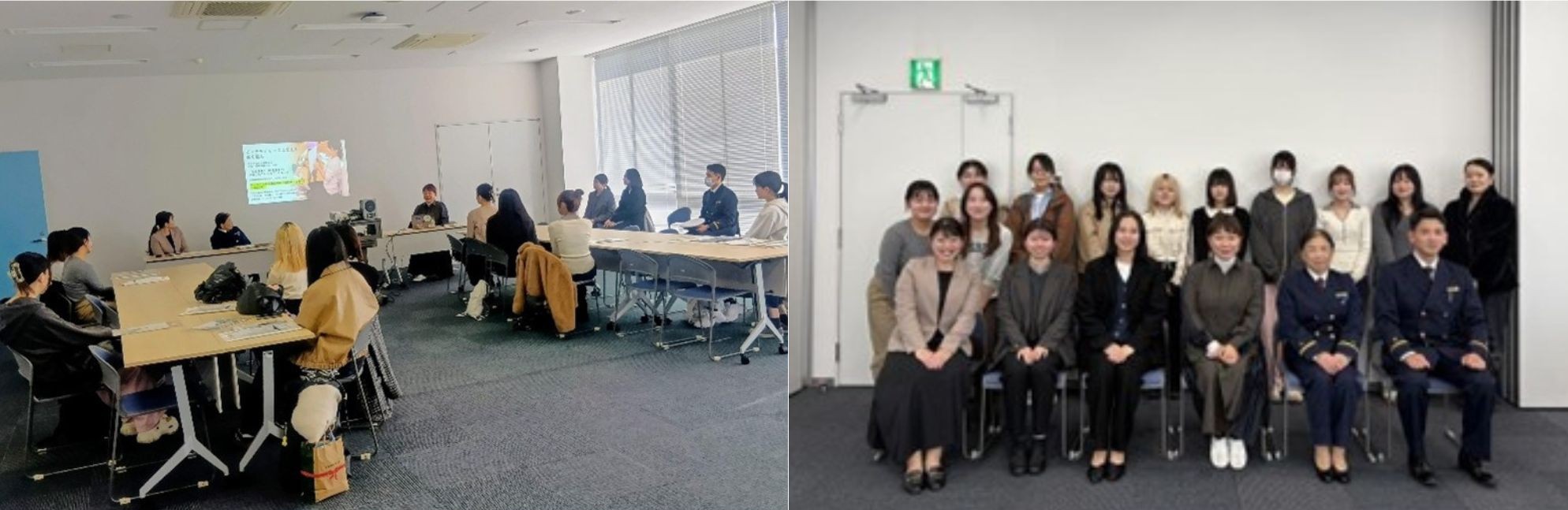 当日は、起業家、民間企業の管理職、公務員(公安職)の女性職員をゲストに迎え、本座談会には女子学生12名が参加しました。さまざまな業界で活躍する女性から、実際の業務内容やキャリア形成の過程、女性が継続的に活躍できる環境づくりに取り組む具体的な事例について紹介があり、将来の働き方を考える上で有意義な学びの機会となりました。