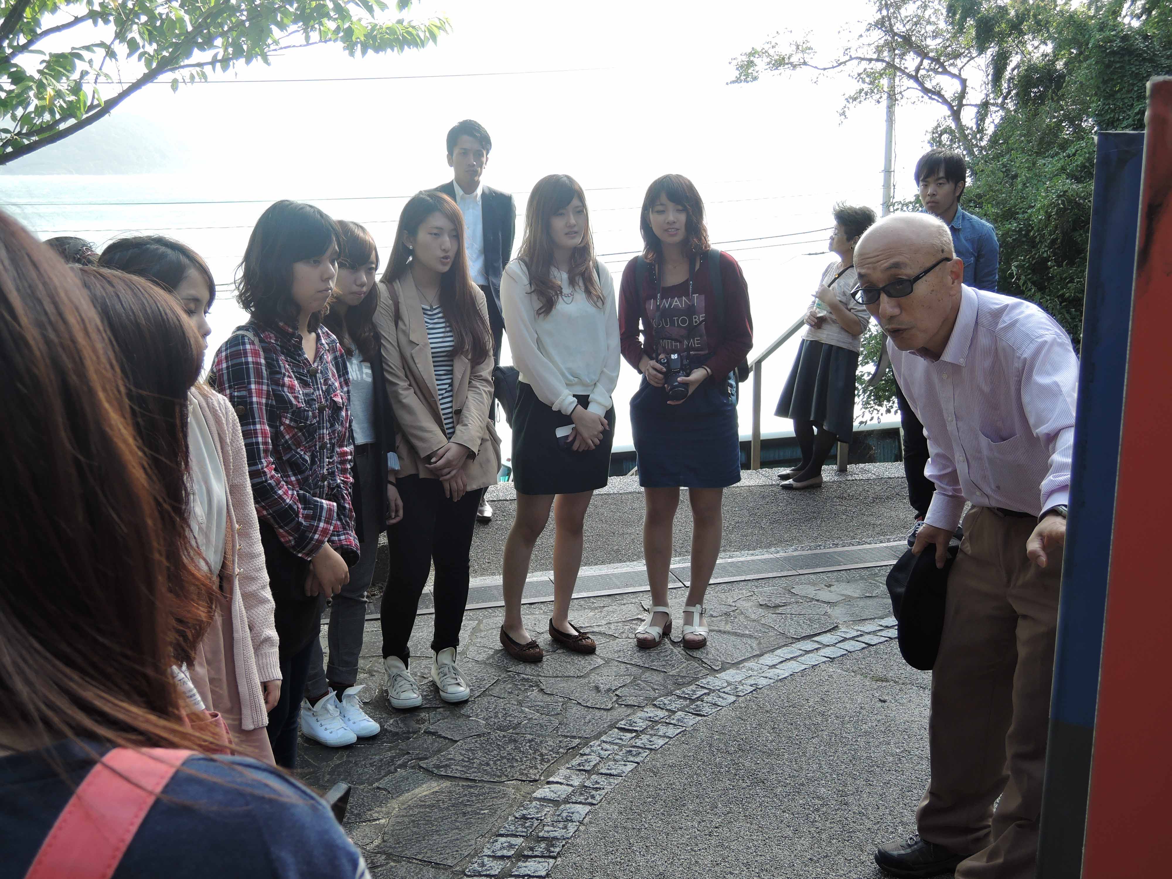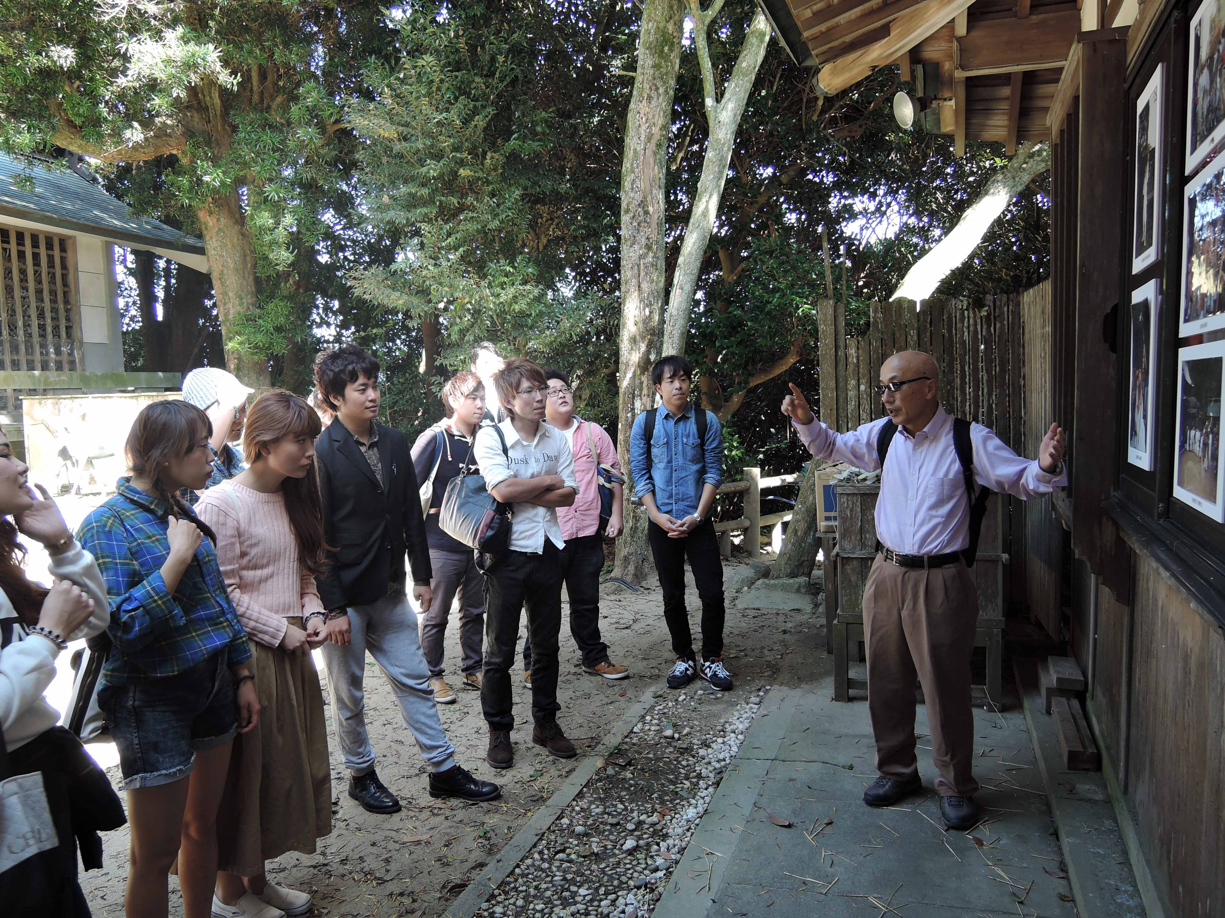 【志賀海神社で説明を聞く様子】 |