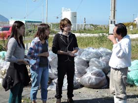 【志賀島の方に調査をする様子】 |