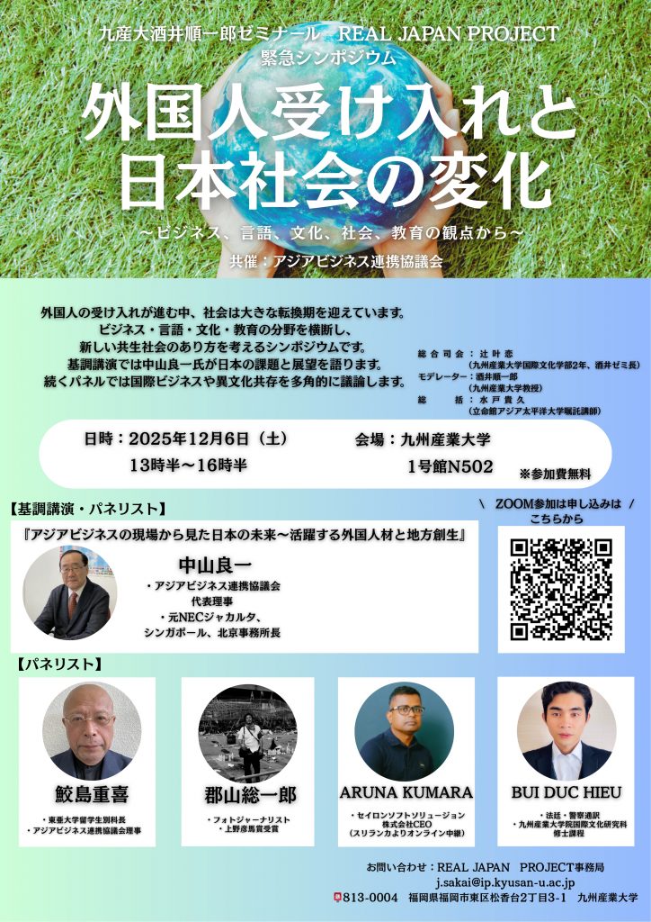 REAL JAPAN PROJECTシンポジウム『外国人受け入れと日本社会の変化~ビジネス、言語、文化、社会、教育の観点から~』