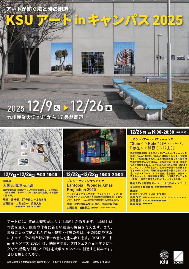 12月9日(火)~12月26日(金)、本学キャンパス内で芸術学部の教員・学生によるイベント「KSUアートinキャンパス2025」を開催します。