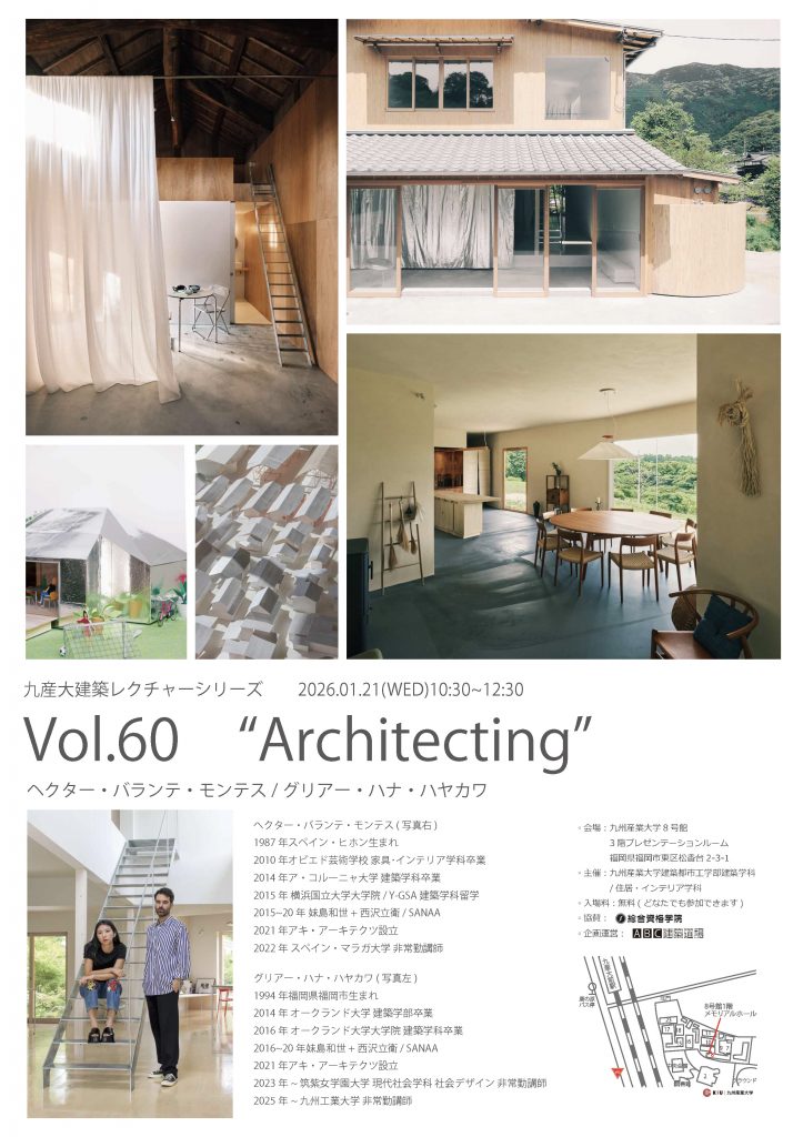 1月21日(水)、本学8号館3階プレゼンテーションルームにて「九産大建築レクチャーシリーズvol.60 アキ・アーキテクツ講演会」を開催します。
