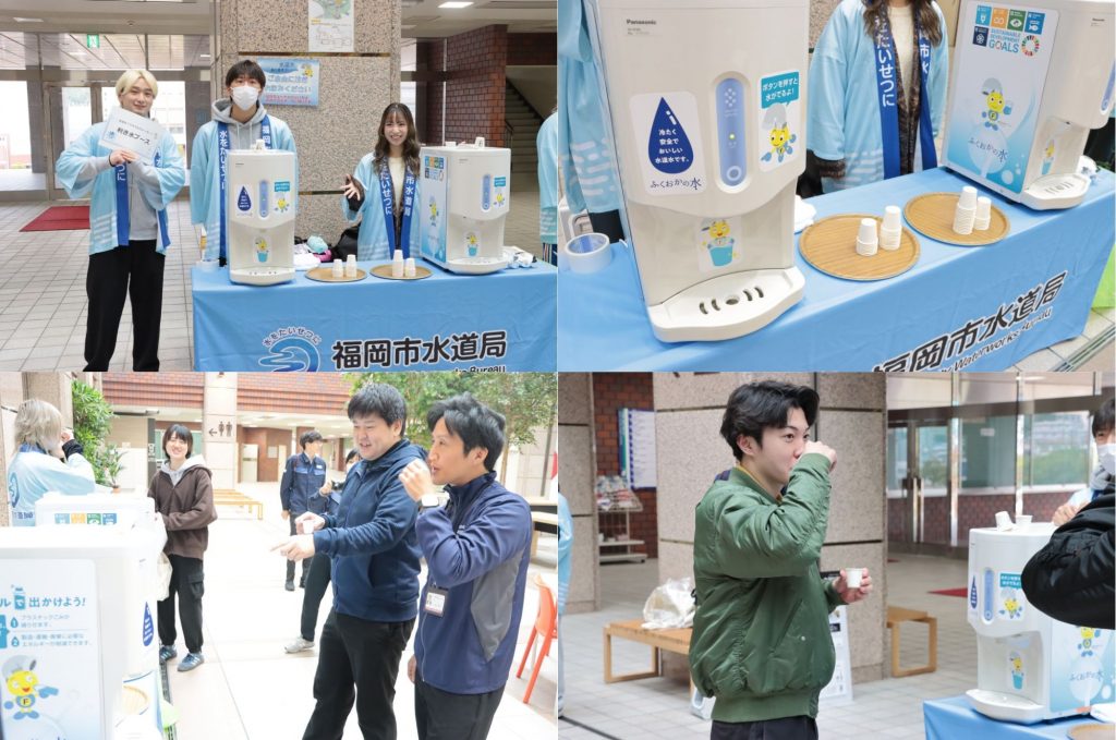 11月18日(火)、学内で、地域共創学部地域づくり学科行平真也准教授が担当する学科横断科目「特別講座B」の受講学生が、福岡市水道局との連携企画「水道局カフェ」を実施しました。