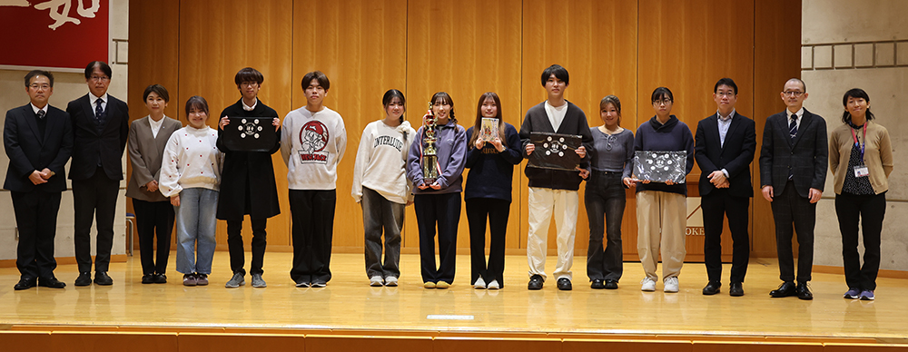 学生は3チームに分かれ、データ分析や現地調査を基に同市の強みを洗い出し、若者向けの観光プランを発表。謎解きゲームと観光スポットを組み合わせたバスツアー、季節に沿ったライトアップ・イルミネーションのほか、灯籠づくりなどの体験ができるナイトツーリズムなど、それぞれの切り口で観光プランを提案しました。発表後は表彰式が行われ、原鶴温泉などの認知度の高い観光地とSUP体験などのこれから認知度向上が期待できる観光資源を組み合わせた観光プランに加え、リピートを促すためのデジタルクーポン券をセットにした旅行パックを提案した「チーム未来」が優勝しました。