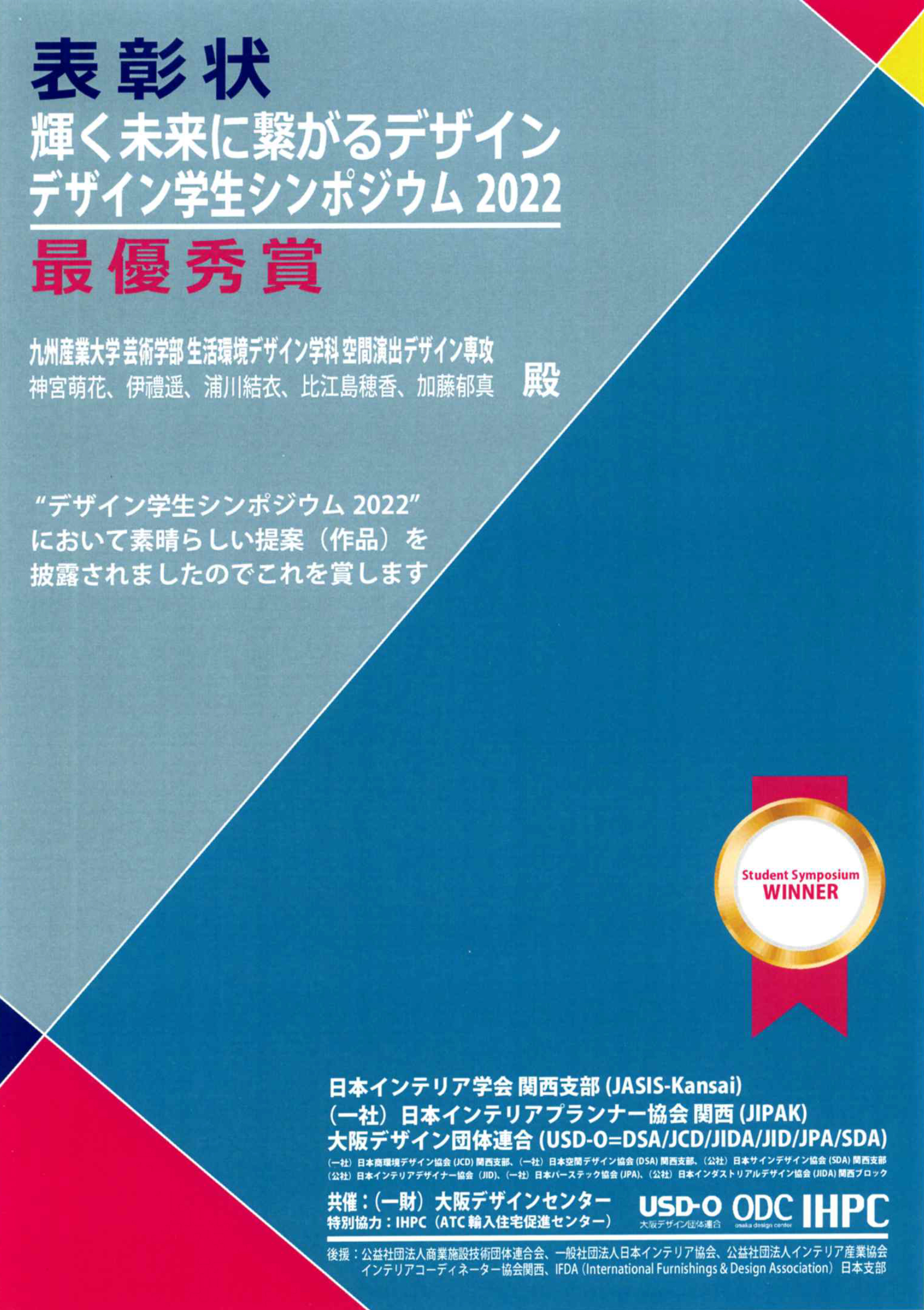 芸術学部芸術表現学科生活環境デザイン学科の学生が制作したオブジェ「ぺたぺたまーち」が「デザイン学生シンポジウム2022」で最優秀賞を受賞しました。
