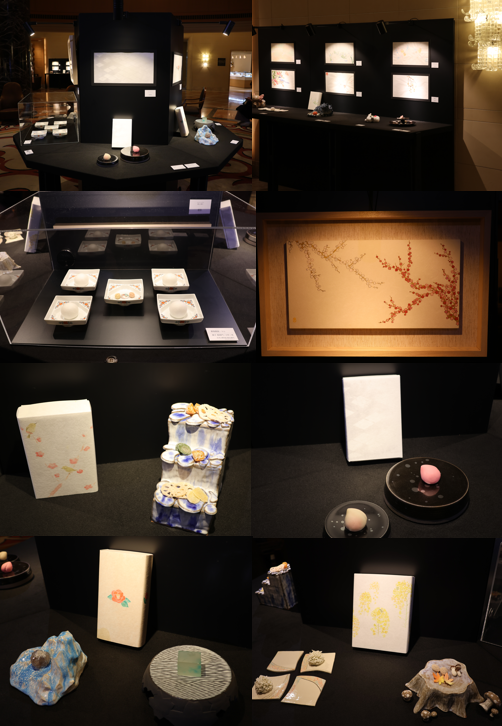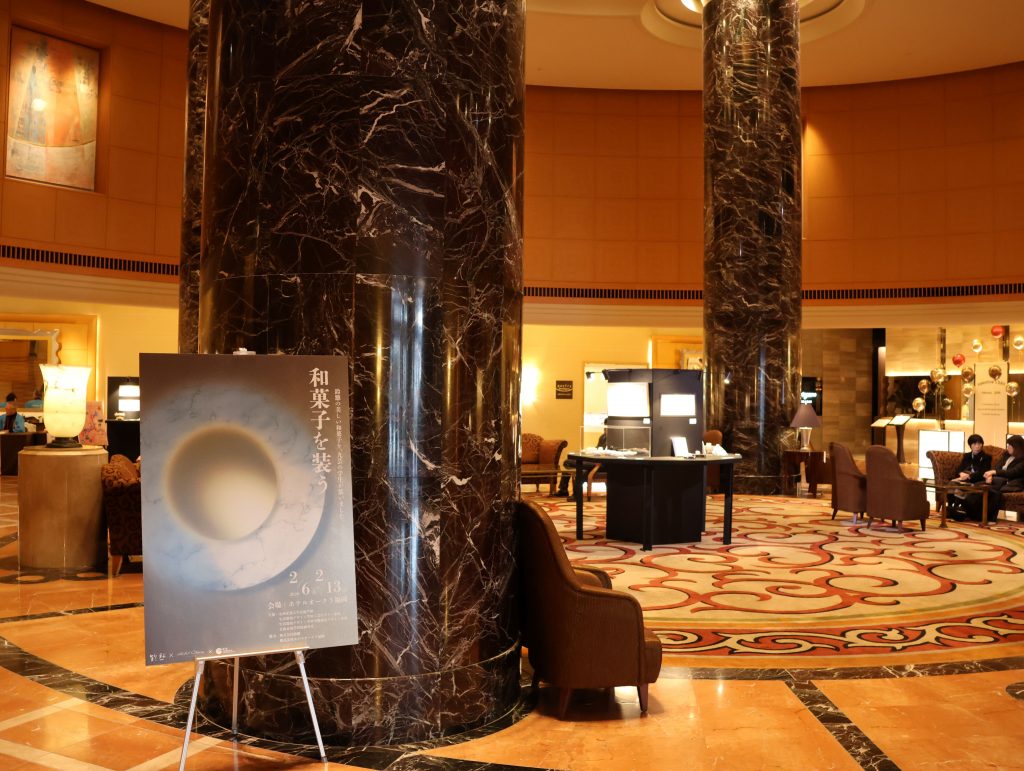 今回展示した和菓子は、本学で学生が焼き上げた器との相乗効果が生まれるよう「鈴懸」が本展示会のために特別にセレクトしたものです。今回 で4 回目を迎える本共同プロジェクトは、ホテルオークラ福岡の協力により、同ホテルを利用する国内外の多くの観光客に博多の伝統文化に触れていただける機会となっています。