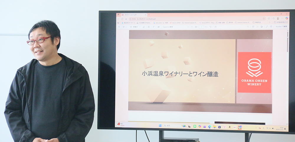 11月13日(木)、グローバル・フードビジネス・プログラム(GFBP)の学生企画の学修活動「フードビジネス未来ラボ」で、小浜温泉ワイナリー代表の川島貴宏氏を招いた講演会を実施しました。