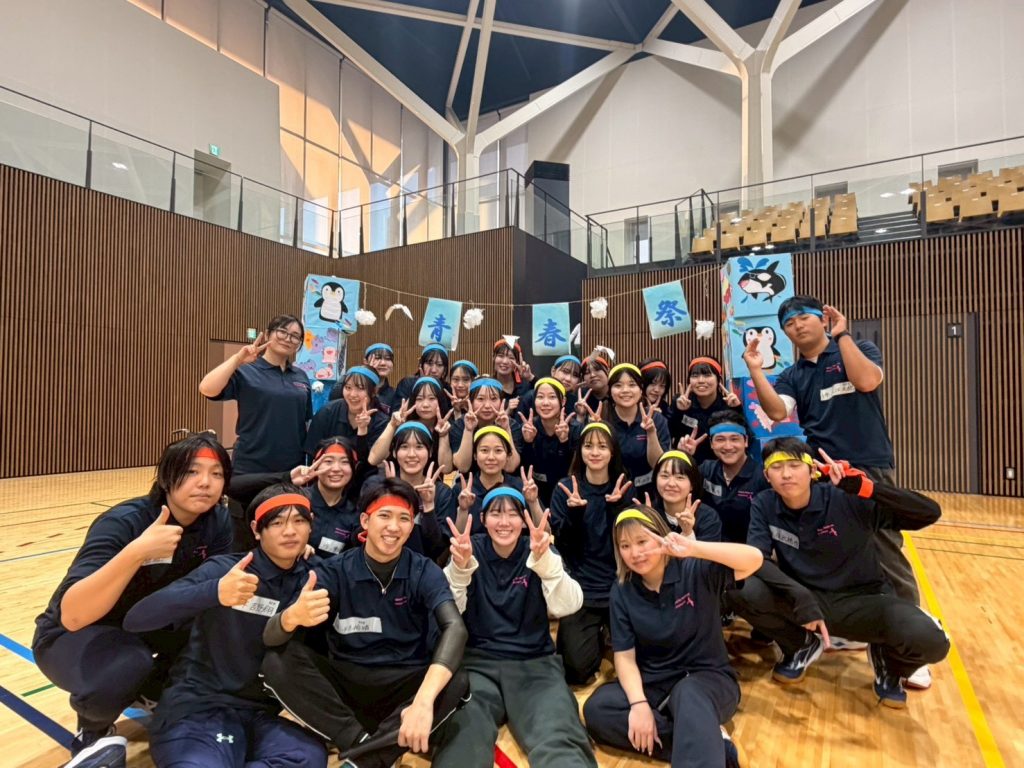 実行委員長で同学科3年の平井裕晴さん(新宮高校)は、「今回の運動会では、個性豊かな実行委員それぞれが思い描くビジョンを共有する時間の大切さに気づかされました。組織として目標を定め、一つの行事を作り上げるためには、“どのような運動会にしたいのか” “そのためにどう活動していくのか”という認識を合わせることが簡単ではなく、話し合いを重ねる必要がありました。準備の過程では、誰か一人が頑張るのではなく、互いに声を掛け合い、担当者任せにせず支え合う姿が印象的でした。一人ひとりに与えられた役割は小さくとも、周囲を助ける動きが自然と生まれる環境こそ、良い組織づくりにつながるのだと実感しました。」と語りました。