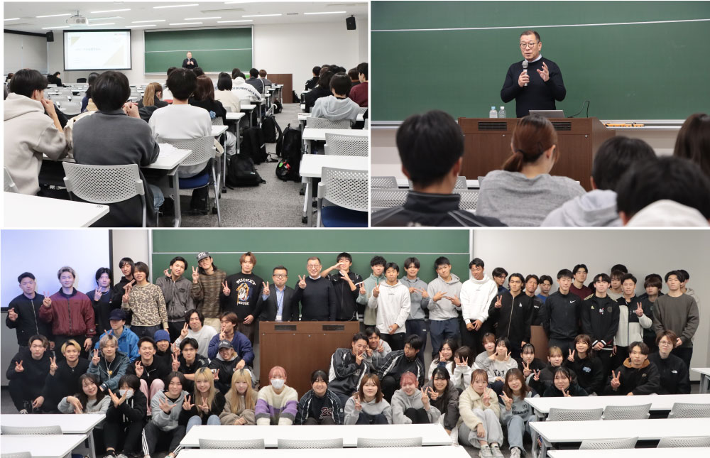 11月25日(火)、公益社団法人SVリーグチェアマンの大河正明氏が、人間科学部スポーツ健康科学科上野直彦教授が担当する講義「スポーツマネジメント論」にゲストスピーカーとして登壇しました。