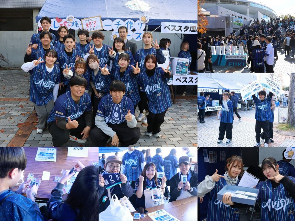 11月30日(日)に行われたアビスパ福岡ホーム最終戦で、経済学部生がシーズン最多観客動員を目指す産学連携プロジェクトに取り組みました。