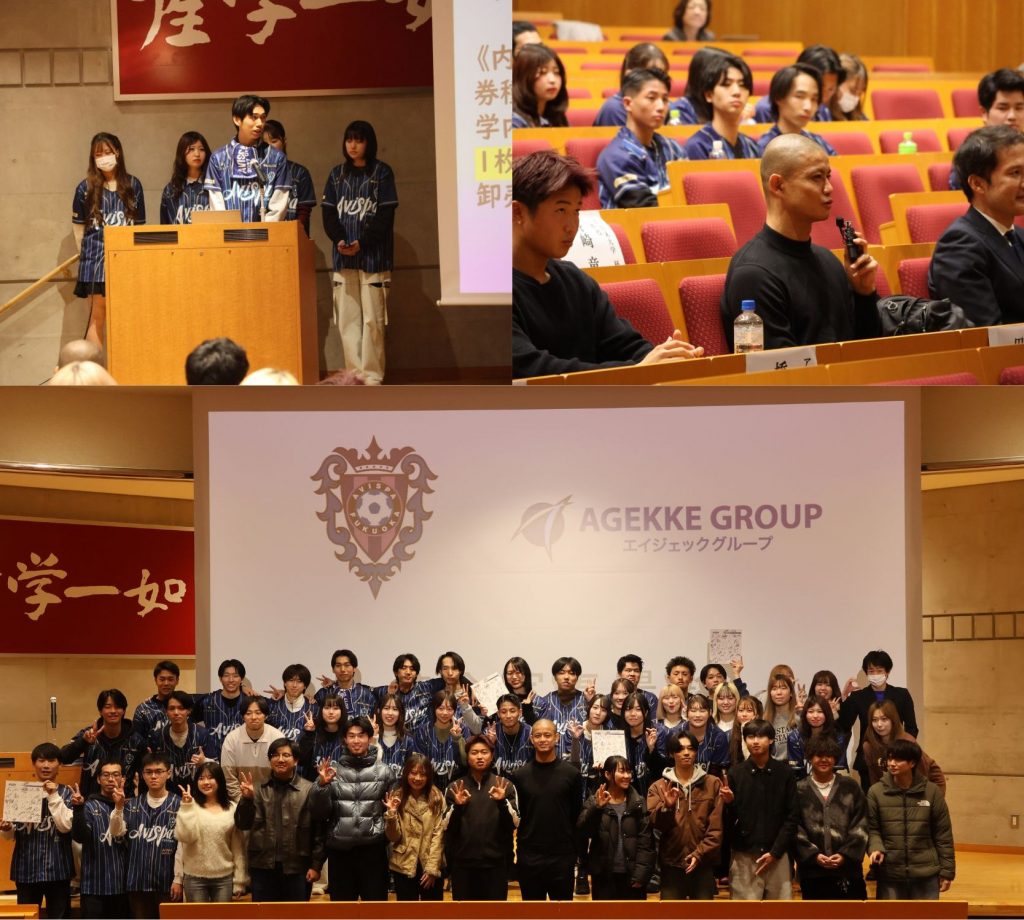 このプロジェクトは、アビスパ福岡と同チームのスポンサー企業である株式会社エイジェックおよび、本学を含む県内4つの大学が連携し、学生約70名で集客に向けた広報戦略やグッズ販促を企画・実施するものです。