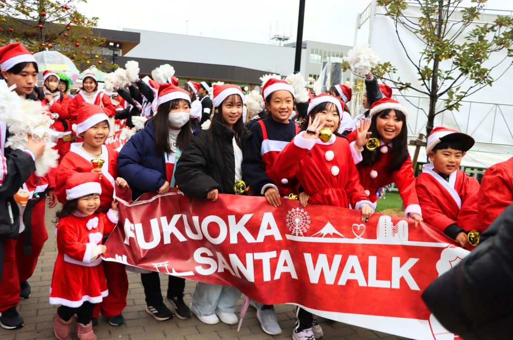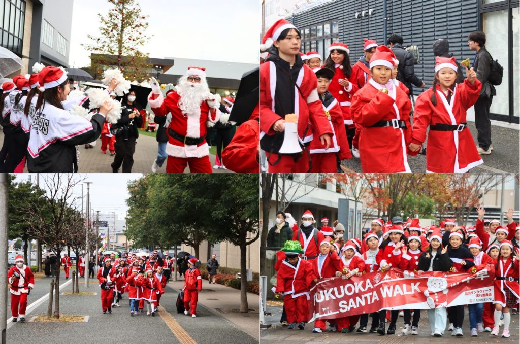 12月14日(日)、経済学部経済学科の授業「実践企画演習」(黒木宏一准教授、濱川和洋助教)を履修する学生約20名が、福岡市東区千早でチャリティイベント「Fukuoka Santa Walk in Chihaya 2025」を開催し、子どもから大人まで計164人がサンタクロースに扮し街を歩きました。