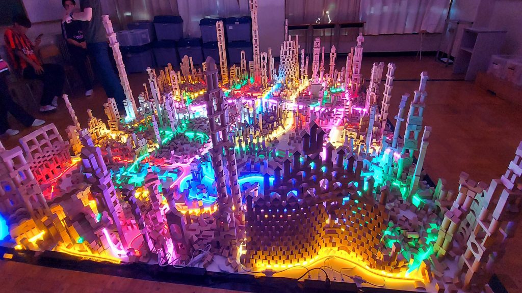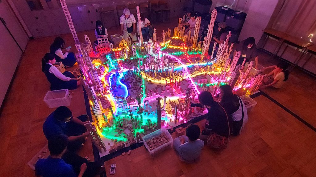 受賞作品は、2024年6月に茨城県私学協会の芸術家招聘事業として、学校法人田中学園水戸葵陵高等学校(茨城県水戸市)の空き教室で実施した「積み木であかりのワークショップ~童話を題材とした読書感想光~」から生まれたインテリアアート「あかりのありか《みと》」(英文表記:Where the Light Dwells, MITO)です。