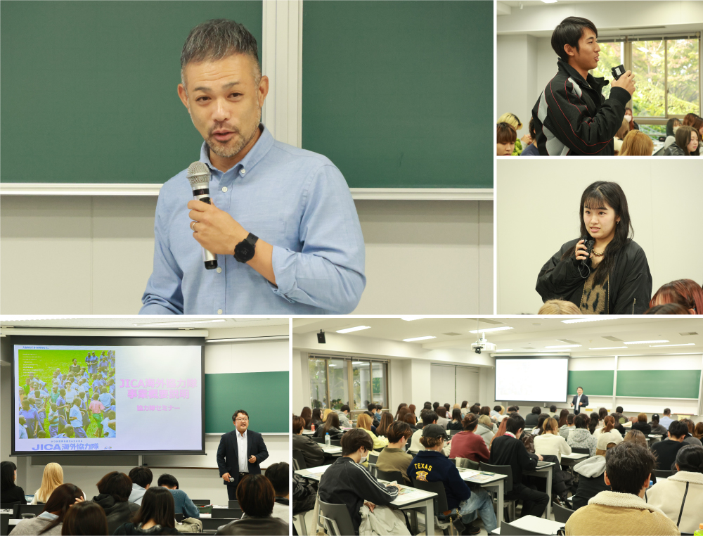 11月18日(火)、本学にて国際文化学部国際文化学科秋保研究室とJICA(国際協力機構)共催「JICA海外協力隊セミナー」を開催し、学生約100名が参加しました。