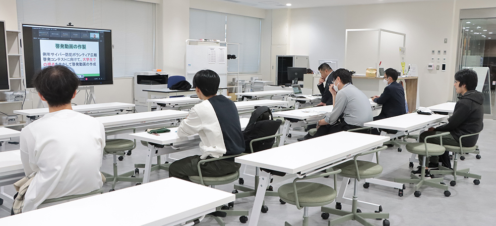 当日は本学と同様の取り組みを行う全国の教育機関と警察関係46団体が参加。教育機関3校による活動報告と宮城県警察本部によるAIを活用したサイバーパトロールに関する日本サイバー犯罪対策センター(JC3)との共同研究のほか、JC3の活動紹介などが行われました。