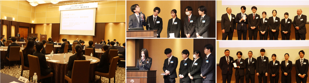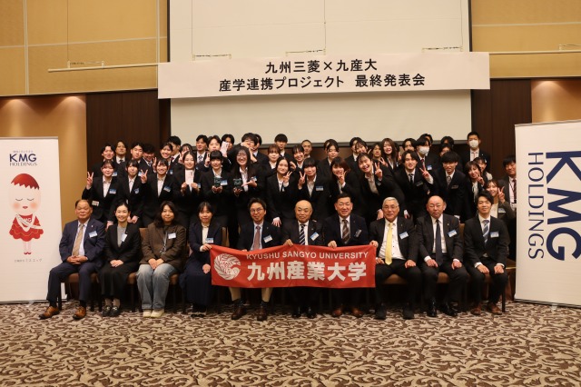 12月13日(土)、KKRホテル博多にて「九州三菱×九産大 産学連携プロジェクト最終発表会」を開催し、商学部経営・流通学科の安熙卓教授と脇夕希子准教授のゼミナールで学ぶ3年生約40名が、10ヵ月間にわたり取り組んできた産学連携プロジェクトの成果を発表しました。