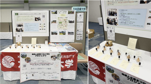 10月29日(水)、久留米リサーチパークにて、公益財団法人久留米リサーチパーク主催「第24回 産学官テクノ交流会」が開催され、商学部経営・流通学科の侯利娟ゼミと西村香織ゼミが萩原オリーブ農園(久留米市)との産学連携活動の成果をポスター展示しました。