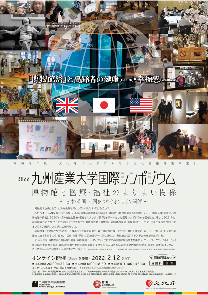 私たちは、そんな疑問を持ちながら、米国、英国の現地調査を踏まえ、両国から博物館関係者を招聘して、2019年に「地域社会での博物館の役割」、2020年に「博物館と医療福祉とのよりよい関係」をテ マとした国際シンポジウムを開催した。そして2021年は現地調査ができなかったものの、「コロナ禍での博物館活動」「博物館と高齢者の健康、幸福感」をテーマに、米国と英国をつないだオンライン国際シンポジウムを開催した。