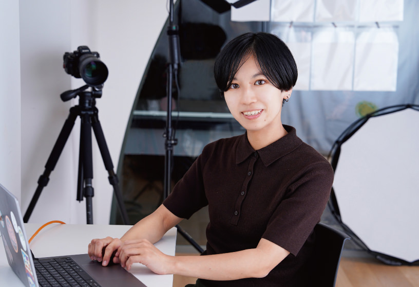 九芸で一番印象に残っているのは卒業制作につながる「PARK」という展示で、赤を基調としたモニュメントを中心に配置して、5台のプロジェクターで円形の壁を5つのスクリーンにし、それぞれで違う映像を投影するという作品です。卒業後は、2年間スタジオで広告や雑誌媒体の写真撮影に携わり、その後、写真家渞忠之のアシスタントとして3年半勤め、2024年にフォトグラファーとして独立しました。九芸在学中にゼミ展を含め6回の写真展を行ったのですが、フォトグラファーとして独立して写真展を行う際に、当時のノウハウがとても役に立ちました。また、卒業してからも、作品集の構成などに関して先生方にアドバイスをいただいています。