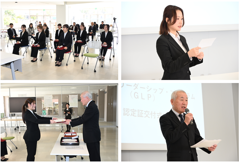 GLPの運営に携わる教職員が出席する中、北島学長より一人ずつ認定証が授与され、学生たちのプログラム修了が祝福されました。