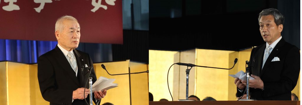 柳健司造形短期大学部学長【写真右】は「本学の恵まれた環境の中で失敗を恐れずに挑戦することで感性を磨き、芸術の力で未来を形作ってください」と新入生を激励しました。