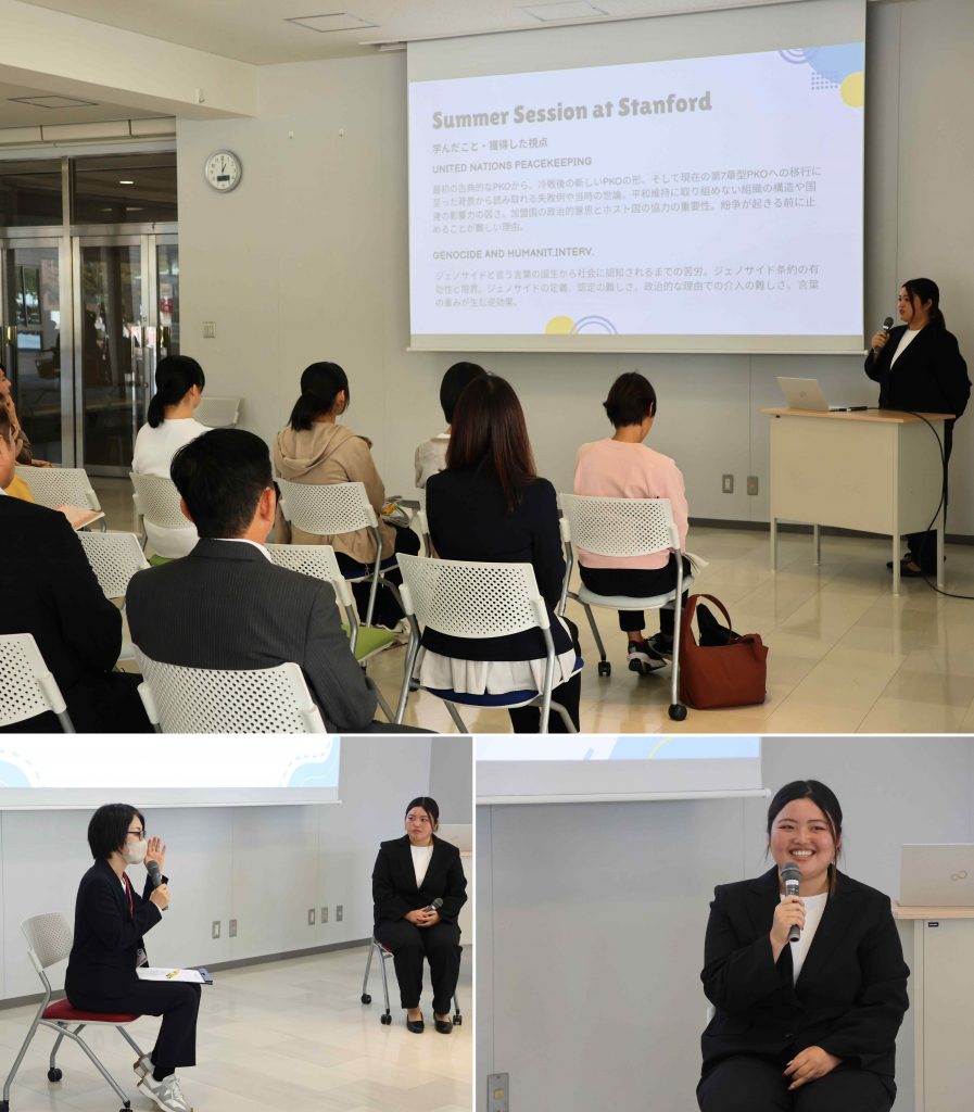 10月28日(火)、本学から「スタンフォード大学サマーセッション(Stanford Summer International Honors Program )」に派遣された金原瑞紀さん(理工学部情報科学科4年/筑紫女学園高校)がプログラムを修了して帰国したことを受け、留学報告会を開催しました。