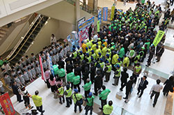 | 内 容 | 女子学生による宣言や寸劇イベント等 発会式終了後、JR香椎駅において東警察署と合同で「性犯罪防止キャンペーン」の実施 関連記事はこちら(九州産業大学ニュース) |