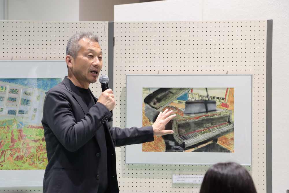 柳造形短期大学部学長は、「皆さんの大胆な描き方や色遣いがとても素晴らしい。これからは芸術が重要視される時代です。その純粋な気持ちを持ち続けて大人になってください」と激励の言葉を贈りました。