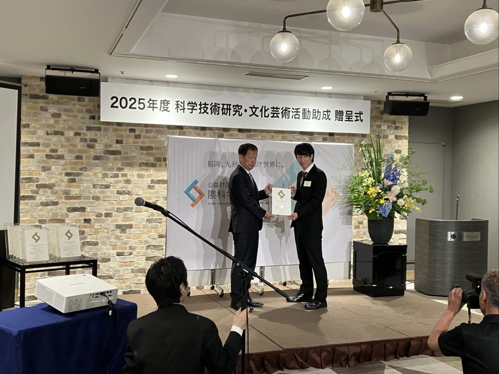 6月20日(金)、本学アート&デザイン研究センター児玉研究員が、公益財団法人隈科学技術・文化振興会「文化芸術部門研究助成活動」において最上位区分である「活動助成AA」に採択され、福岡市内で開催の贈呈式に出席しました。